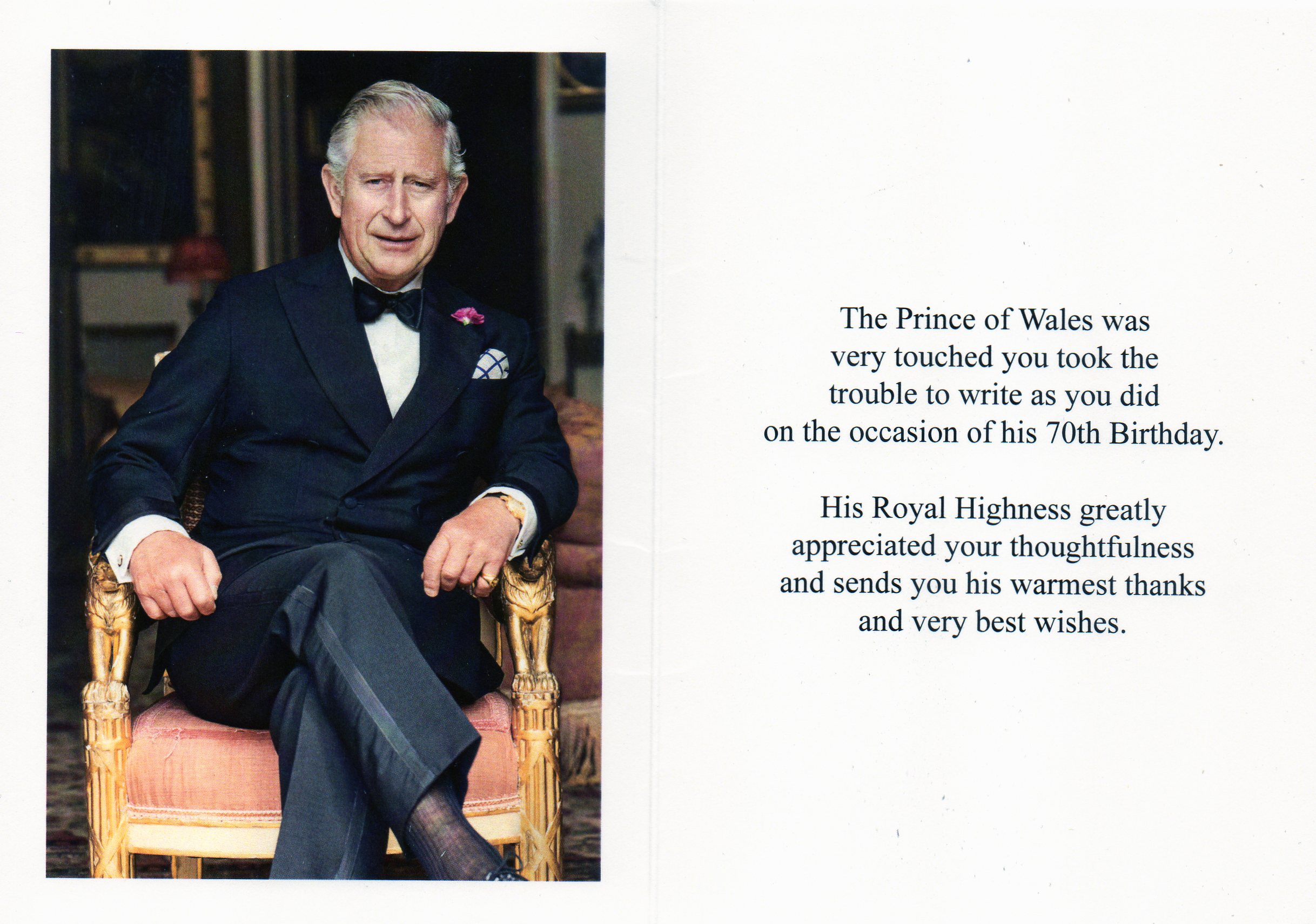 Reply Prince Charles 70th Birthday